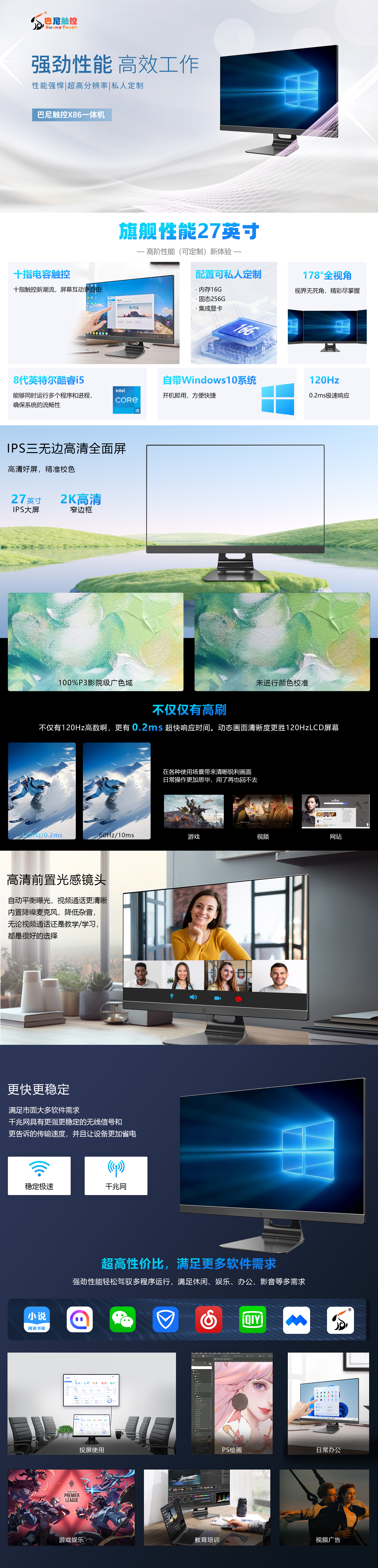 横板|立式|三无边框|1920*1080|全视角|内嵌式电容触摸|cpu i7 10700 |内存16g|128固态 |1050ti显卡|4g显存